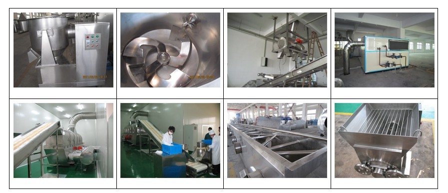 我公司可根據(jù)用戶的實際要求進行工程設(shè)計,目前單條生產(chǎn)線的產(chǎn)量有100kg/h、200kg/h、300kg/h、500kg/h、800kg/h、1500 kg/h等。雞精生產(chǎn)主要包括粉碎、混合、制粒、干燥、分篩、加香等步驟,我公司生產(chǎn)的雞精生產(chǎn)線具有工藝設(shè)計緊湊、設(shè)備制作精美、流水化運作程度高、產(chǎn)品品質(zhì)穩(wěn)定、易清潔保養(yǎng)等特點。設(shè)備與物料接觸部位全部采用優(yōu)質(zhì)不銹鋼材料,并經(jīng)過精細拋光,耐鹽份腐蝕,清洗更方便,符合食品生產(chǎn)管理的QS要求及GMP標(biāo)準(zhǔn)。