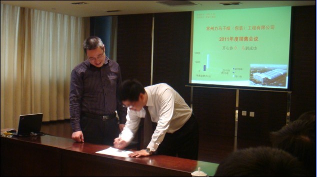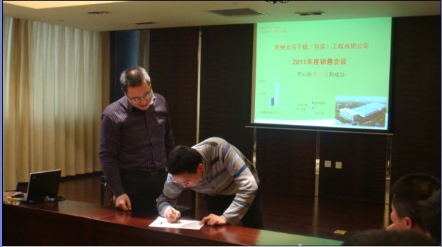 常州力馬干燥(包裝)工程有限公司2011年度銷售會(huì)議于2011年2月18日在常州新都大酒店竹林廳勝利召開。