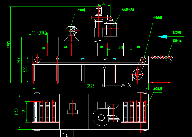 料框超聲清洗完后由吊車吊到移動小車上,移動小車推至烘干機上料端可以用插銷鎖緊或不鎖緊,小車不會移動或跑偏,移動小車與烘干機上料端齊平銜接好后,操作工手動把料框推至烘干機上料端,此時烘干機輸送裝置處于停止狀態(tài),因為烘干機運行是步進運行,所以在輸送裝置上裝有高位檔筋板,操作工只需把料框推至上料端的高位檔筋板上即可,此時操作工可按啟動按鈕,烘干運行開始,隨著設計好的步距及設定好的時間進行烘干、冷卻直至下料,下料時如操作工未取走料框此時輸送會自動停止運行,直至操作工把料框推至移動小車輸送才恢復運行,周而復始。