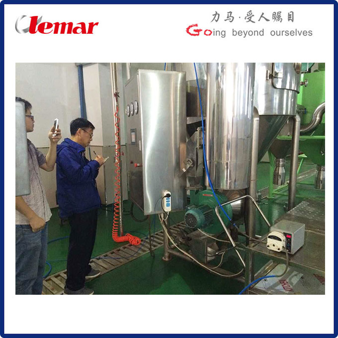 2015年5月16日湖南一制藥公司的張工和徐公一行到我公司進(jìn)行中藥制粉實(shí)驗(yàn),經(jīng)過(guò)40分鐘的等待,紅糖色的中藥液體很快變成了細(xì)膩的紅糖色粉末,色澤與中藥液體相同,味道也無(wú)差異,口感非常棒,得到了客戶的好評(píng)。