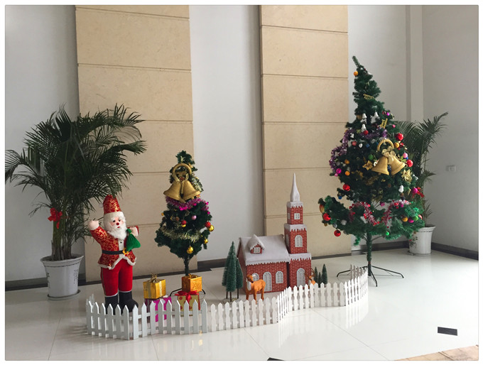 轉(zhuǎn)眼間,2015年圣誕已至,力馬公司上下呈現(xiàn)出濃重的節(jié)日氛圍,公司形象墻上掛起了彩紙和花環(huán),大堂里擺放了喜慶的圣誕老人,卡通的小房子,馴鹿和禮物,還有掛滿彩燈和紙花的圣誕樹,將象征幸福、祥和、平安的節(jié)日氛圍帶給每一個人。