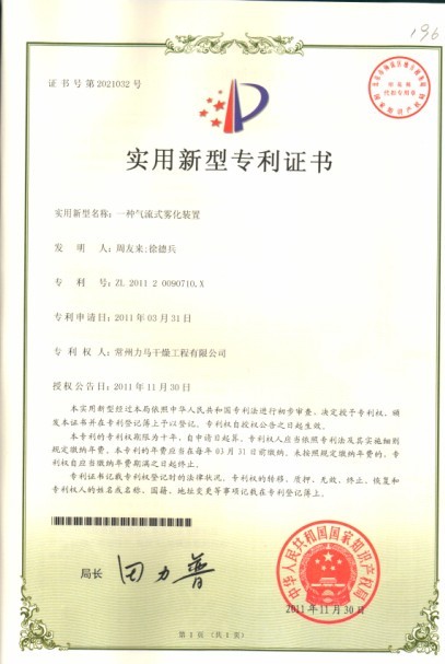 TPG型智能調(diào)味料噴霧干燥機(jī)組獲獎(jiǎng)證書